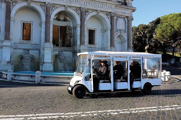 Embark on an unforgettable adventure through the Eternal City with a personalized and immersive golf cart tour. This unique experience offers the perfect blend of comfort, convenience, and charm as you explore Rome's rich history and iconic landmarks with a private driver. Glide effortlessly through the city’s enchanting streets and alleys, uncovering hidden gems and world-famous sights along the way.