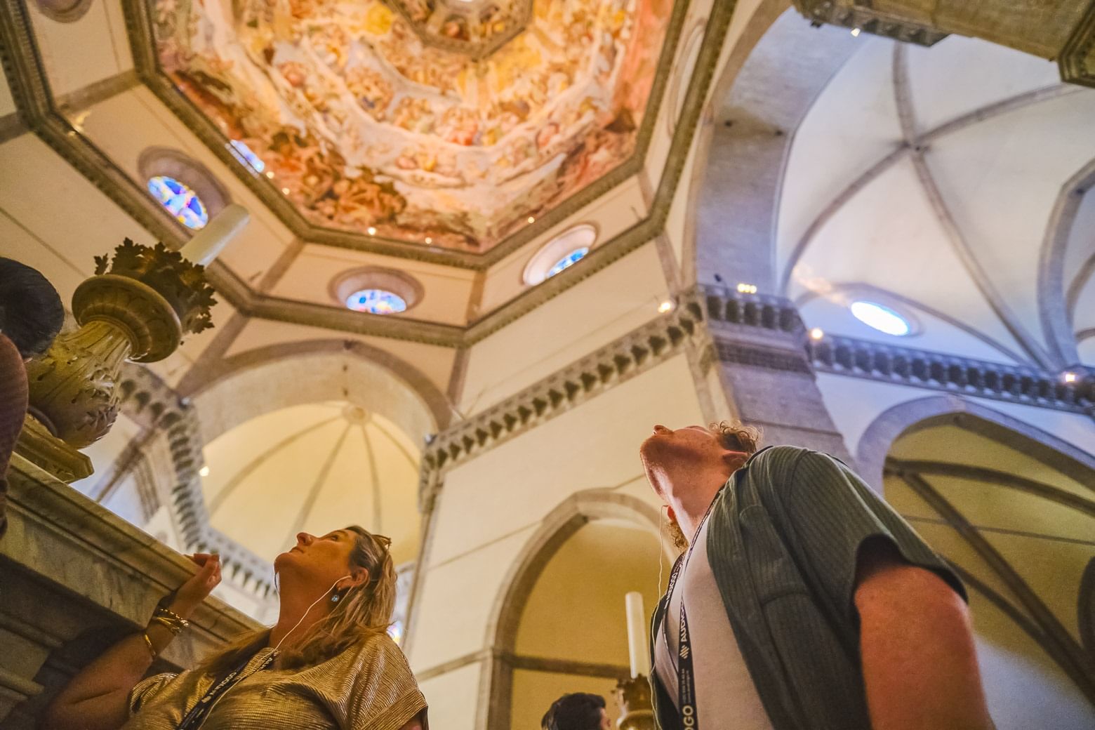 The guided tour will end in the exclusive circular room (accessible only with our tour!) where you will have the opportunity to see the old statues which standed in the façade of the Duomo. In the room you can find the restorers at work with their spatulas and chisels still dirty and smelling of stucco. The surprises for you are not over yet: use your ticket to reach the TOP OF THE CUPOLA admiring up close the stunning Last Judgement frescoes, and finally enjoy a 360° view of Florence from the top!